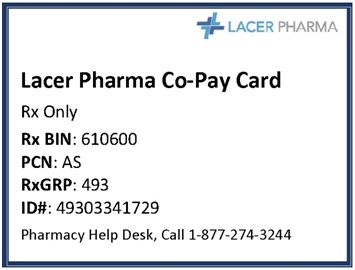 We are pleased to provide you with the Lacer Pharma Co-pay Program Card.